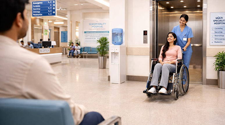 - Re-levelling & Pre-opening features: Maintains precise floor-level accuracy and allows controlled door opening, enabling safe and smooth movement of stretchers, wheelchairs, and hospital beds.